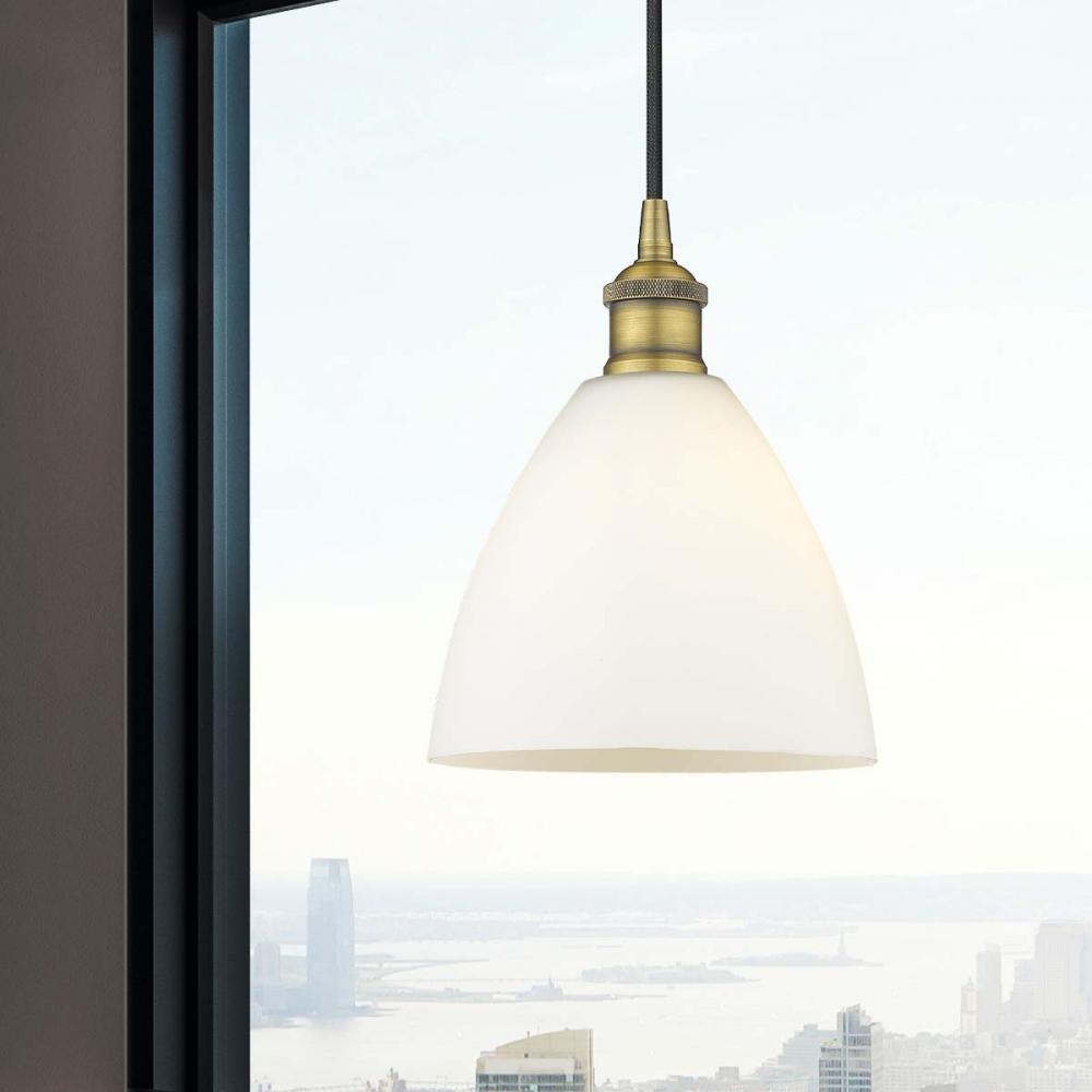 Bristol - 1 Light - 8 inch - Brushed Brass - Matte White Shade - Cord hung - Mini Pendant