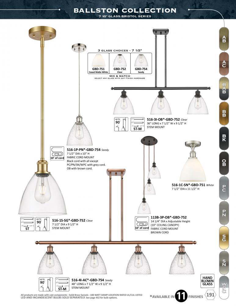 The Ballston collection is comprised of heavy cast components that give the fixture a sturdy contemporary look. We offer the fixture in 11 finishes with a Bare Bulb look or with over 100 possible metal and glass shade options that can change the style to f