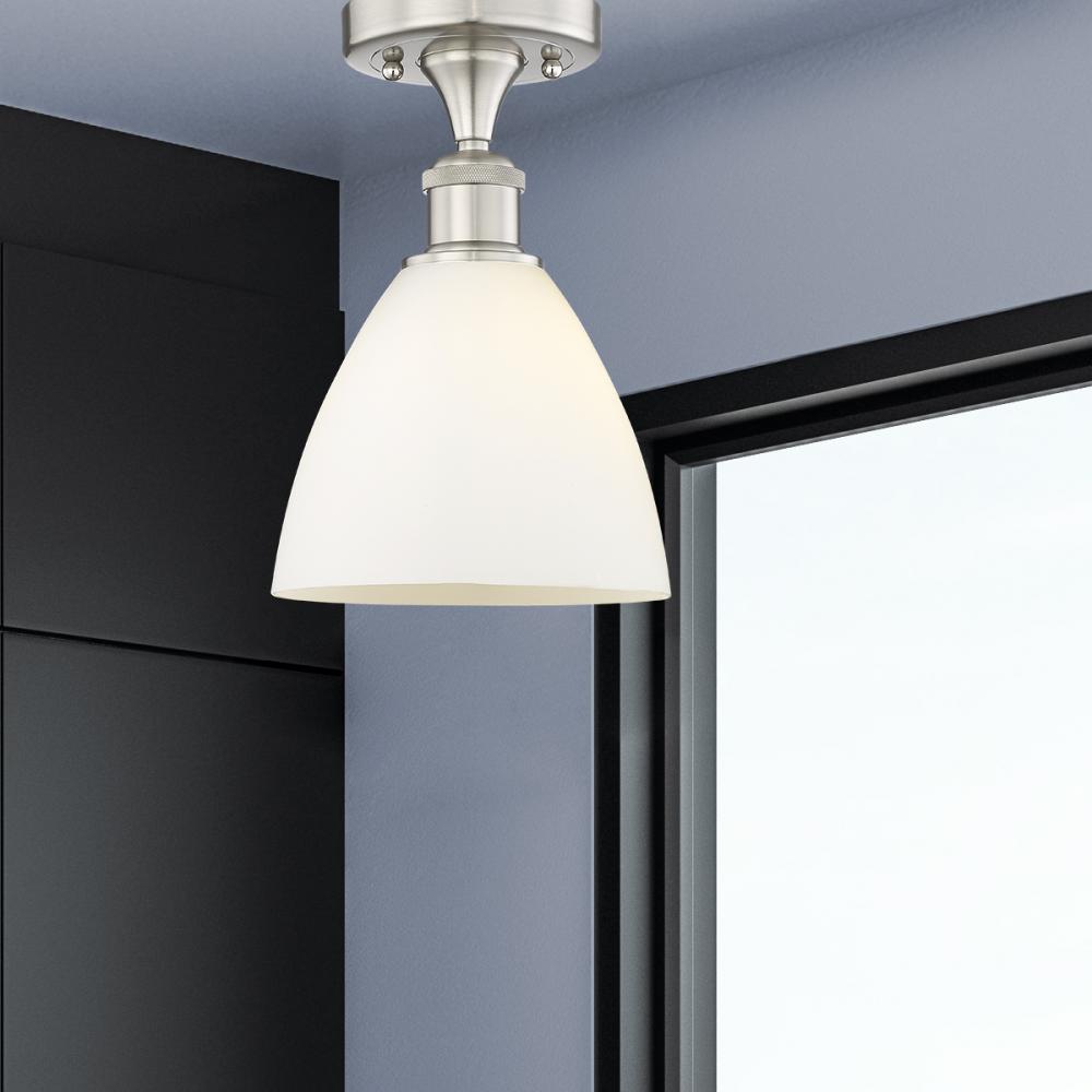 Bristol - 1 Light - 8 inch - Brushed Satin Nickel - Matte White Shade - Semi-Flush Mount