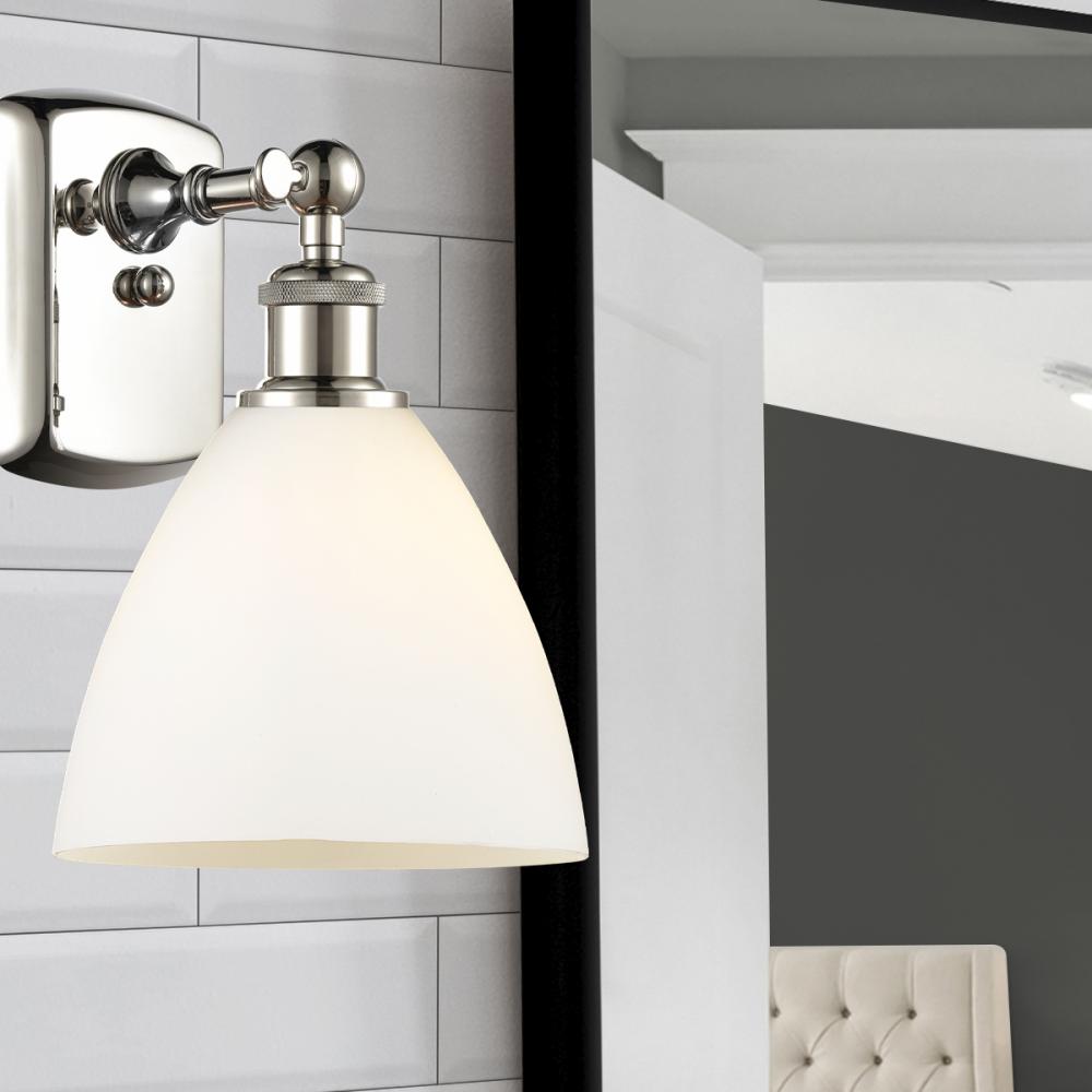 Bristol - 1 Light - 8 inch - Polished Nickel - Matte White Shade - Sconce