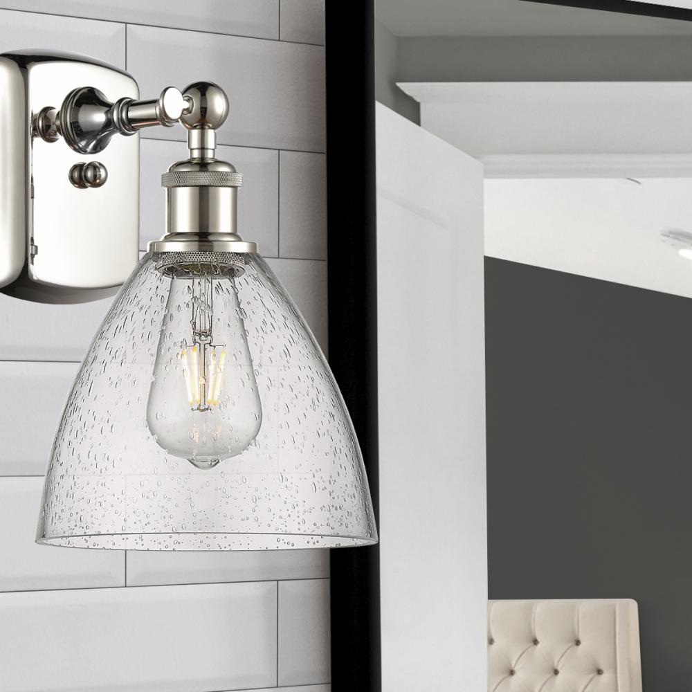 Bristol - 1 Light - 8 inch - Polished Nickel - Seedy Shade - Sconce
