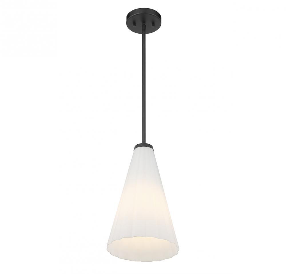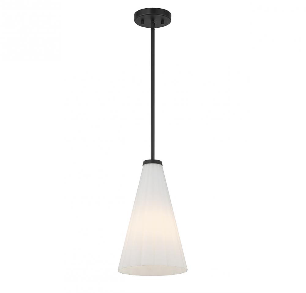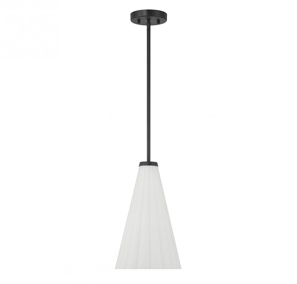 With its elegantly fluted shade of white opal glass and a matte black finish, this Savoy House Bristol 1-light pendant is a beautiful way to boost the light and style of a room. Use it solo or in groupings! Bristol is 9" in width and has an adjustable height ranging from 15.5" to 69". Comes with four 12" downrods and one 6" downrod. Uses 1 standard size bulb with a max of 60 watts (bulb not included).