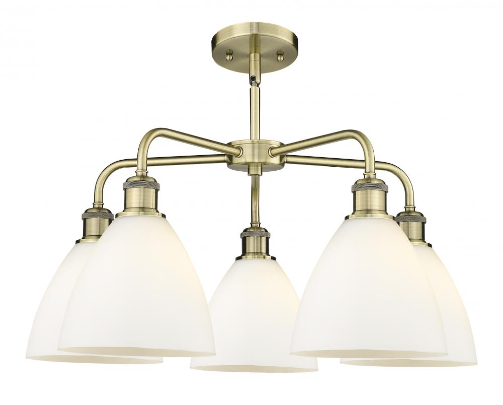 Bristol - 5 Light - 26 inch - Antique Brass - Matte White Shade - Chandelier