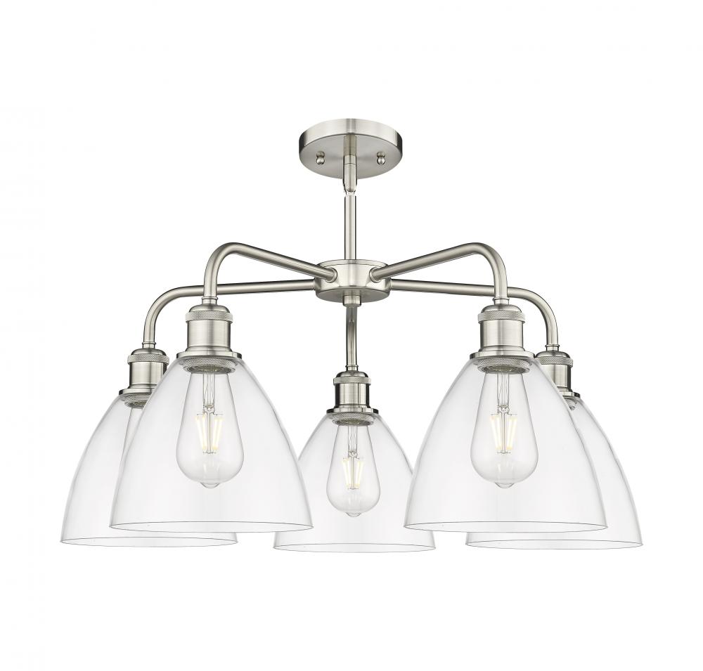 Bristol - 5 Light - 26 inch - Satin Nickel - Clear Shade - Chandelier