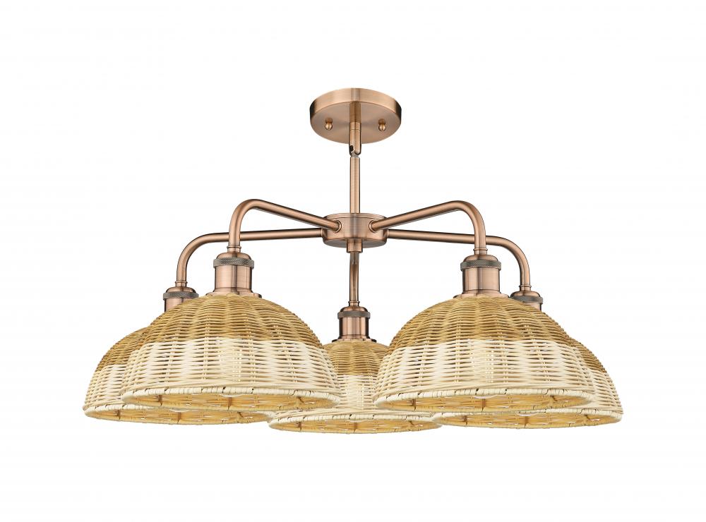Bristol Natural II - 5 Light - 28 inch - Antique Copper - Natural shade - Stem hung - Chandelier