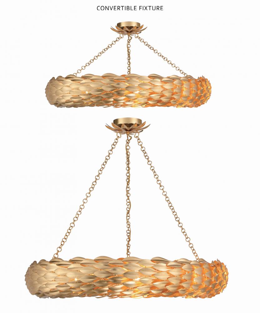 Convertible, can be installed as a ceiling mount or chandelier. The fixture offers a ton of light that will illuminate your ceiling.