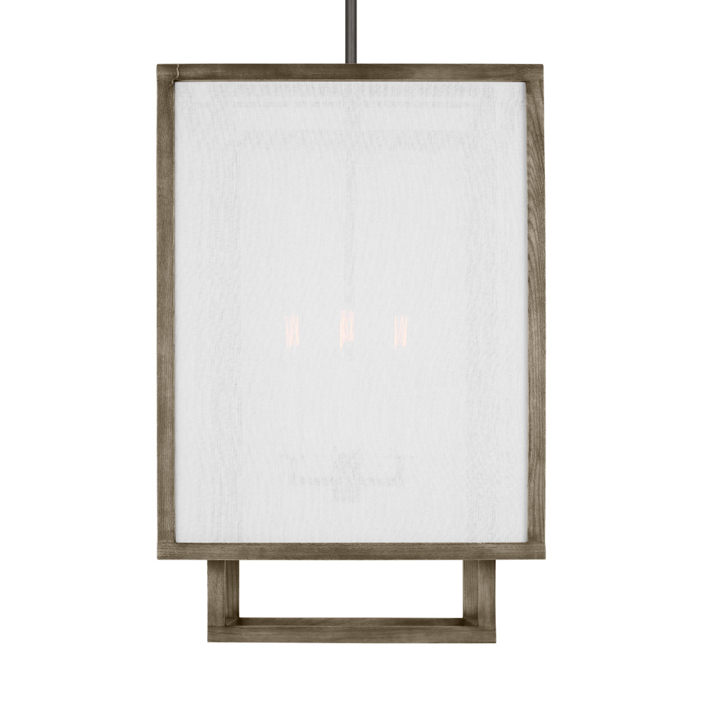 Layering is the signature staple of the Brockway series by Thom Felicia. The wood-frame-within-a-wood frame design is sheltered with linen panels allowing a hint of the architecture within to be experienced directly, while the remainder is seen diffused through the linen. The result is a light source of direct light downward and softened light through the side panel veils, creating a perfect illumination for any space.