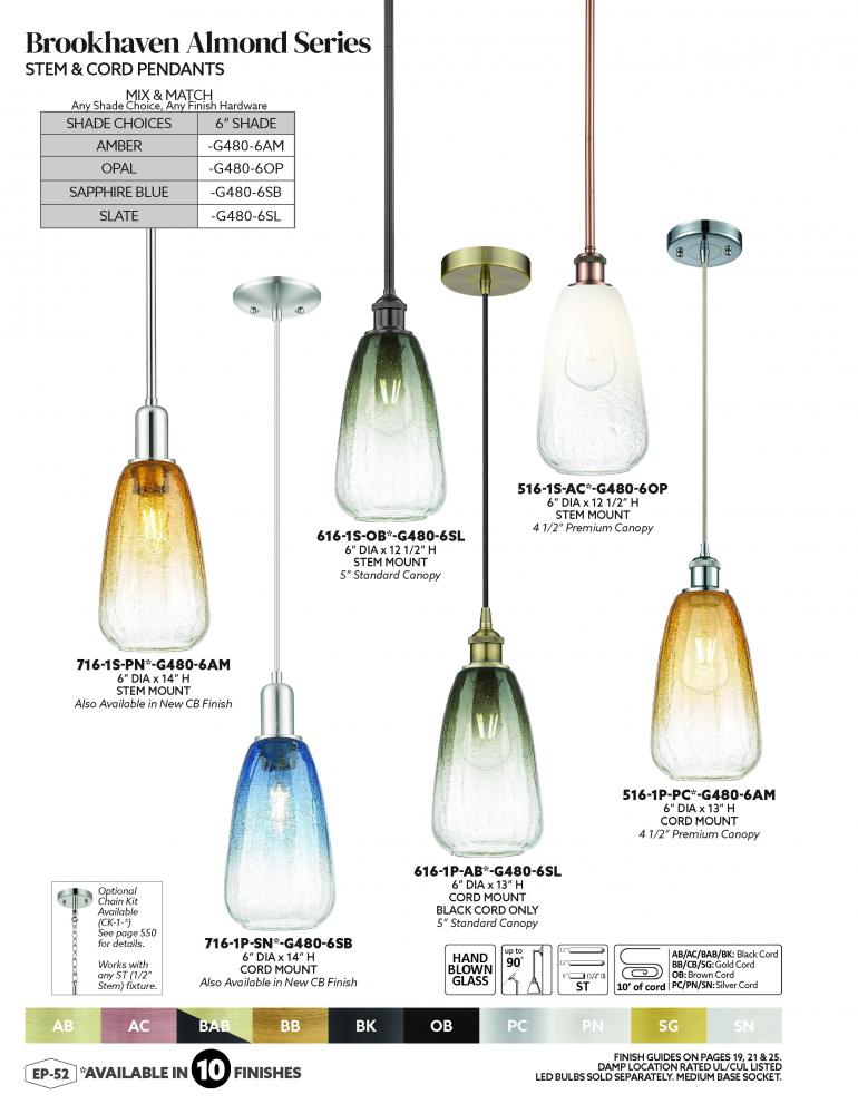 Brookhaven Almond - 1 Light - 6 inch - Antique Brass - Amber Brookhaven Almond Shade - Mini Pendant