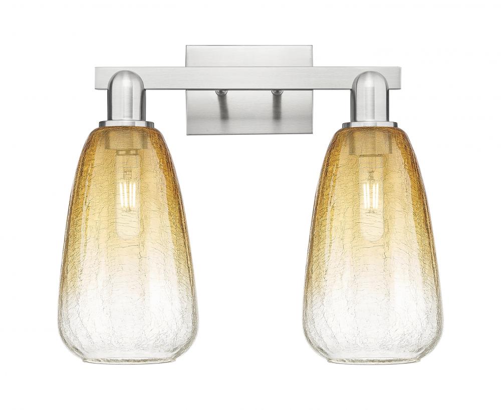 Brookhaven Almond - 2 Light - 16 inch - Brushed Satin Nickel - Amber Brookhaven Almond Shade - Bath Vanity Light