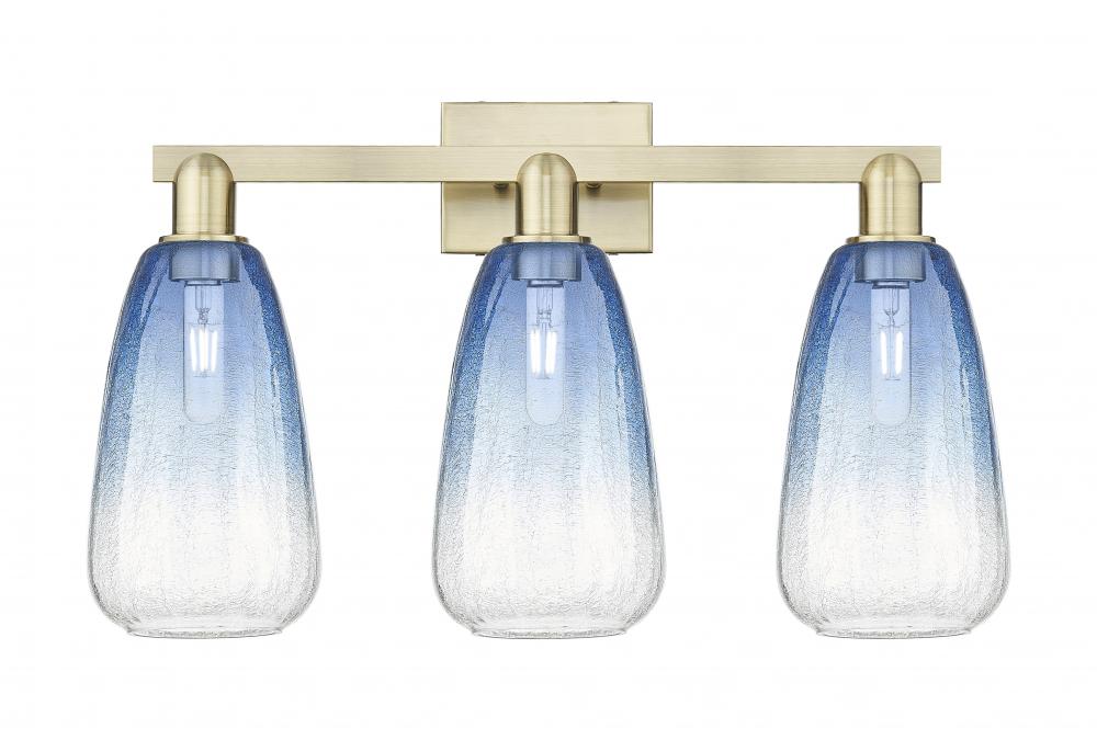 Brookhaven Almond - 3 Light - 26 inch - Antique Brass - Sapphire Blue Brookhaven Almond Shade - Bath Vanity Light