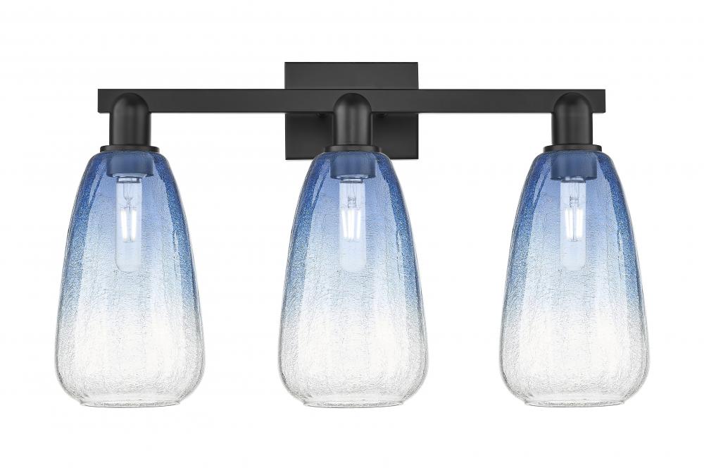 Brookhaven Almond - 3 Light - 26 inch - Matte Black - Sapphire Blue Brookhaven Almond Shade - Bath Vanity Light