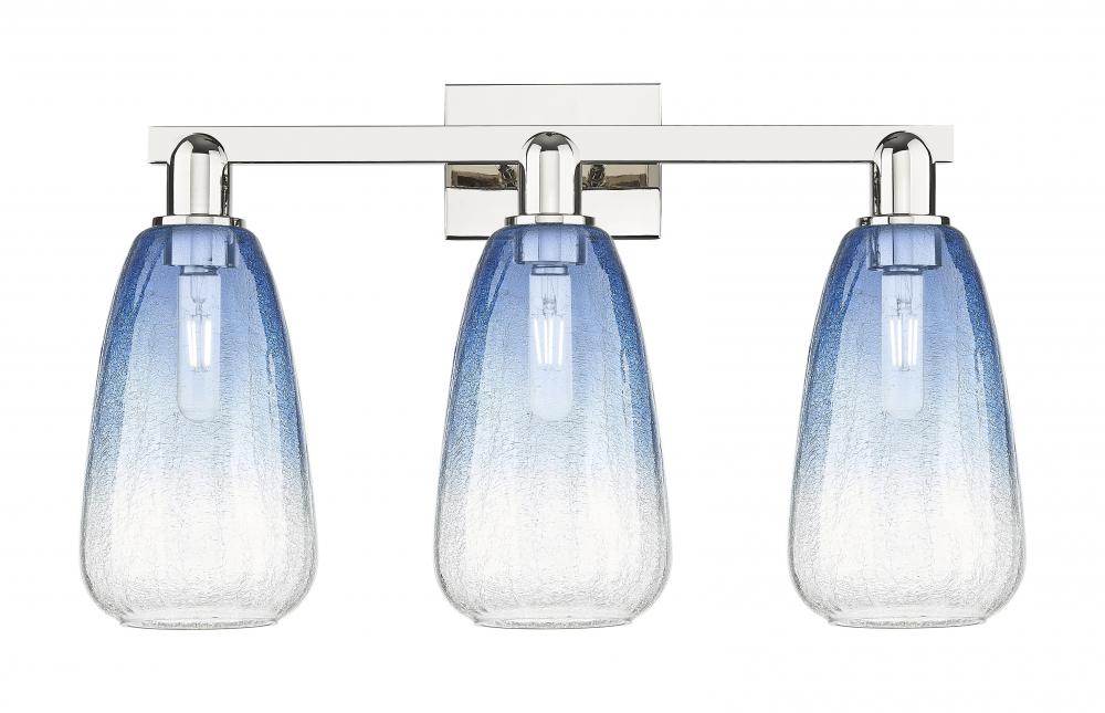 Brookhaven Almond - 3 Light - 26 inch - Polished Nickel - Sapphire Blue Brookhaven Almond Shade - Bath Vanity Light