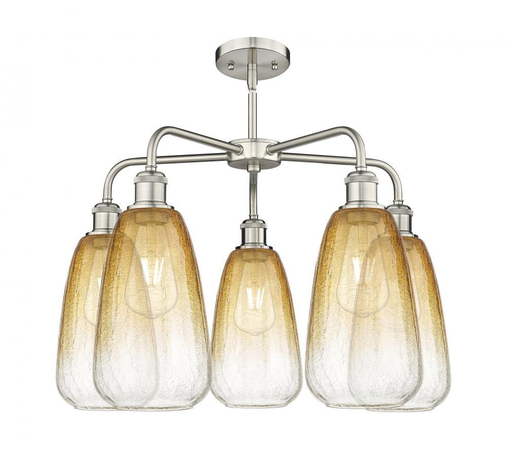 Brookhaven Almond - 5 Light - 25 inch - Satin Nickel - Amber Brookhaven Almond shade - Stem hung - Chandelier
