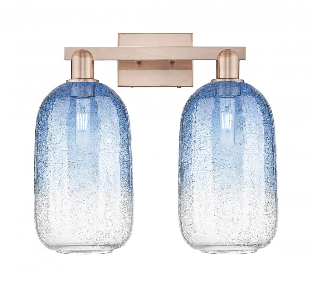 Brookhaven Cloche - 2 Light - 16 inch - Antique Copper - Sapphire Blue Brookhaven Cloche Shade - Bath Vanity Light