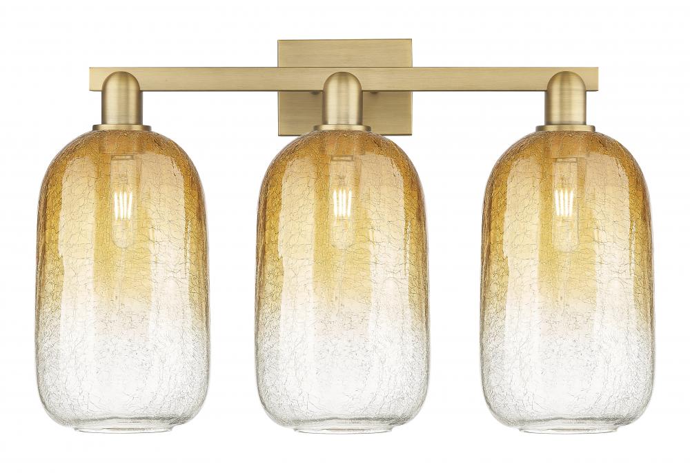 Brookhaven Cloche - 3 Light - 26 inch - Brushed Brass - Amber Brookhaven Cloche Shade - Bath Vanity Light