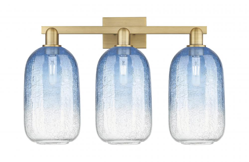 Brookhaven Cloche - 3 Light - 26 inch - Brushed Brass - Sapphire Blue Brookhaven Cloche Shade - Bath Vanity Light