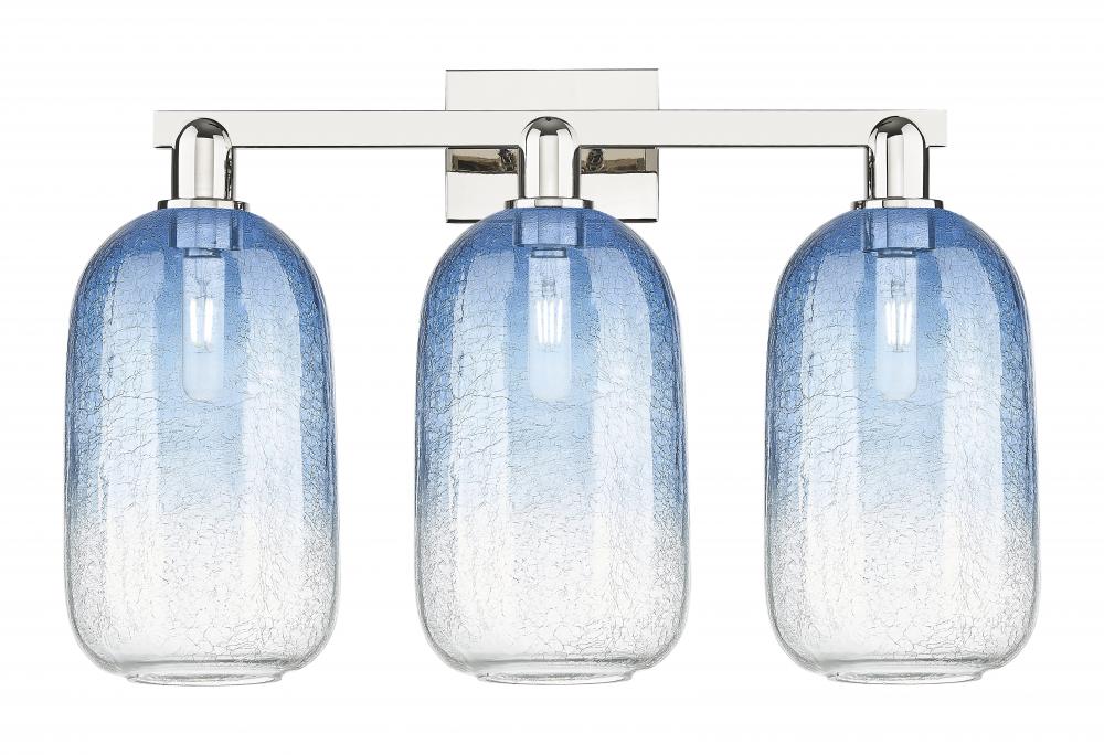 Brookhaven Cloche - 3 Light - 26 inch - Polished Nickel - Sapphire Blue Brookhaven Cloche Shade - Bath Vanity Light