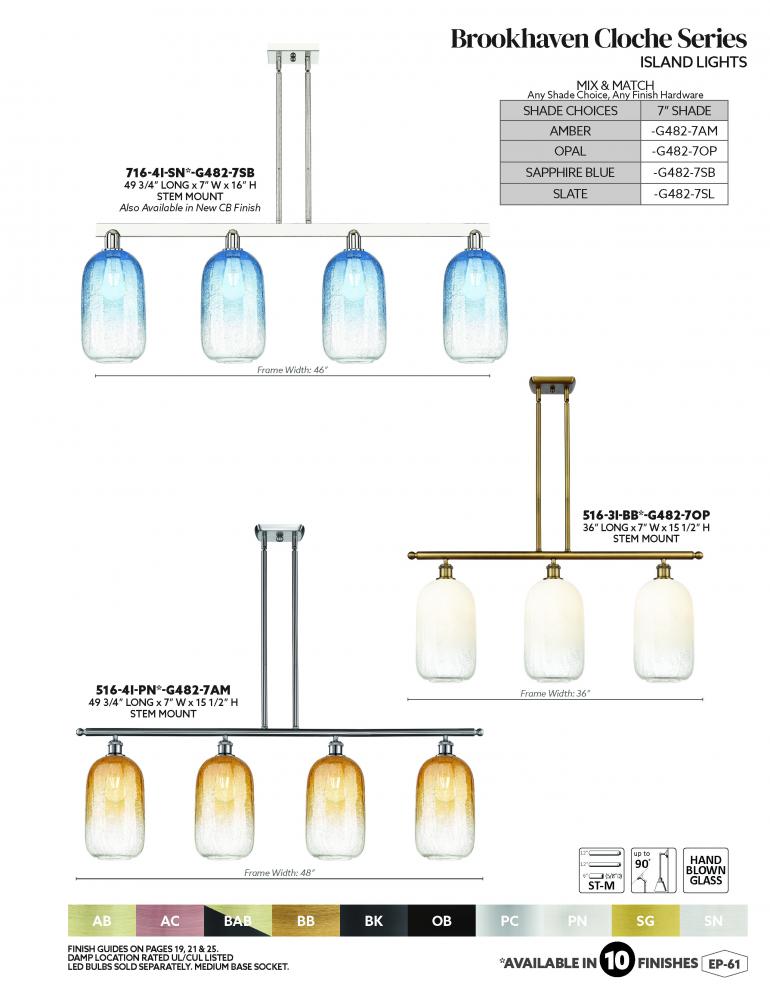 Brookhaven Cloche - 4 Light - 48 inch - Antique Brass - Amber Brookhaven Cloche Shade - Stem hung - Island Light