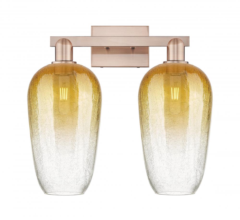 Brookhaven Flute - 2 Light - 16 inch - Antique Copper - Amber Brookhaven Flute Shade - Bath Vanity Light