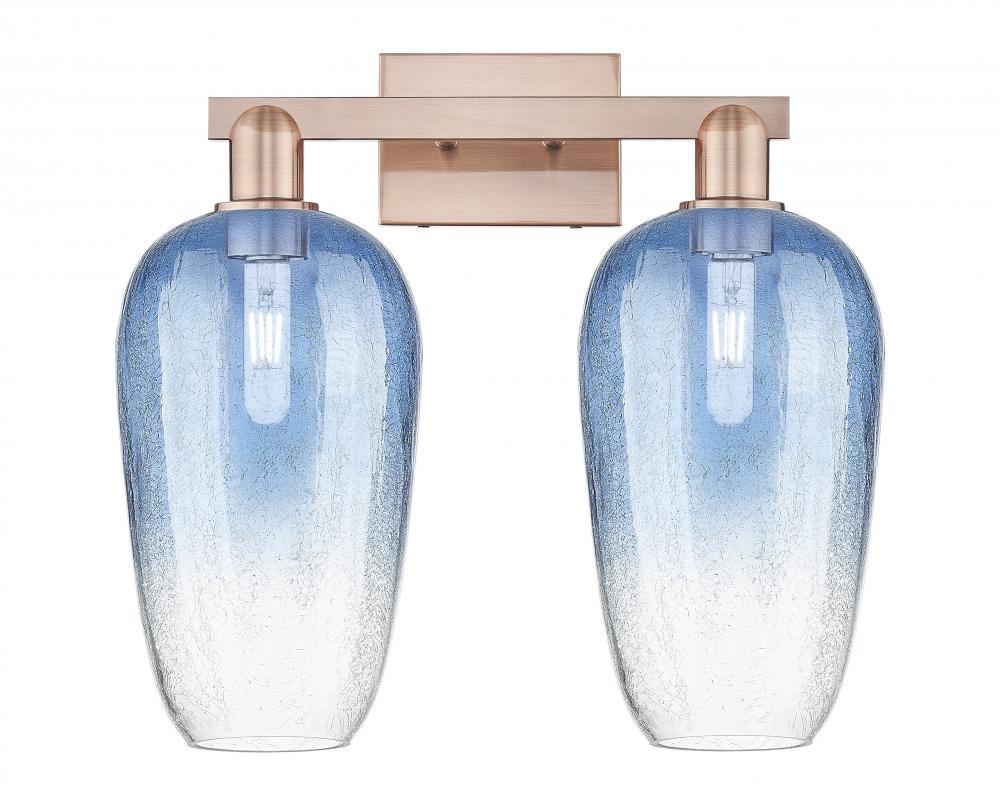 Brookhaven Flute - 2 Light - 16 inch - Antique Copper - Sapphire Blue Brookhaven Flute Shade - Bath Vanity Light