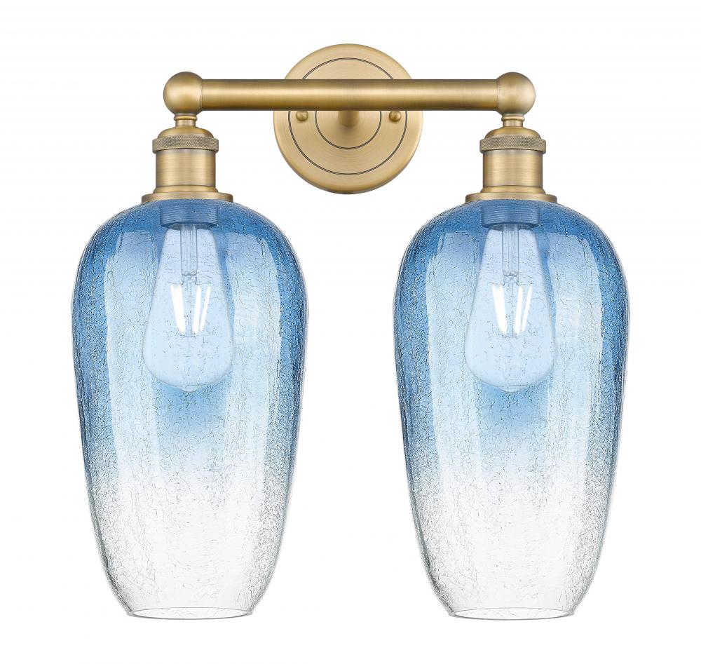 Brookhaven Flute - 2 Light - 16 inch - Brushed Brass - Sapphire Blue Brookhaven Flute shade - Bath Vanity Light