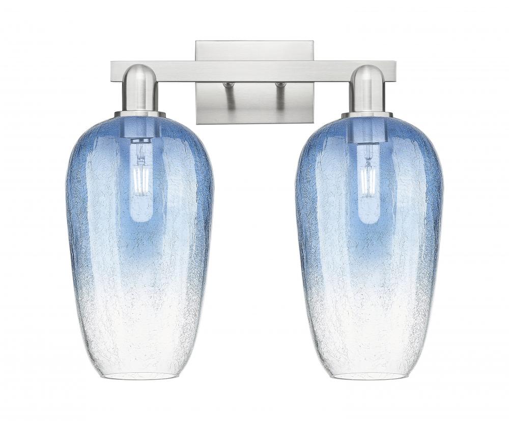 Brookhaven Flute - 2 Light - 16 inch - Brushed Satin Nickel - Sapphire Blue Brookhaven Flute Shade - Bath Vanity Light