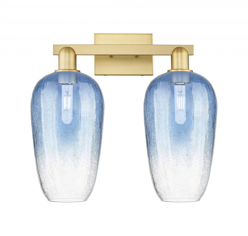 Brookhaven Flute - 2 Light - 16 inch - Satin Gold - Sapphire Blue Brookhaven Flute Shade - Bath Vanity Light