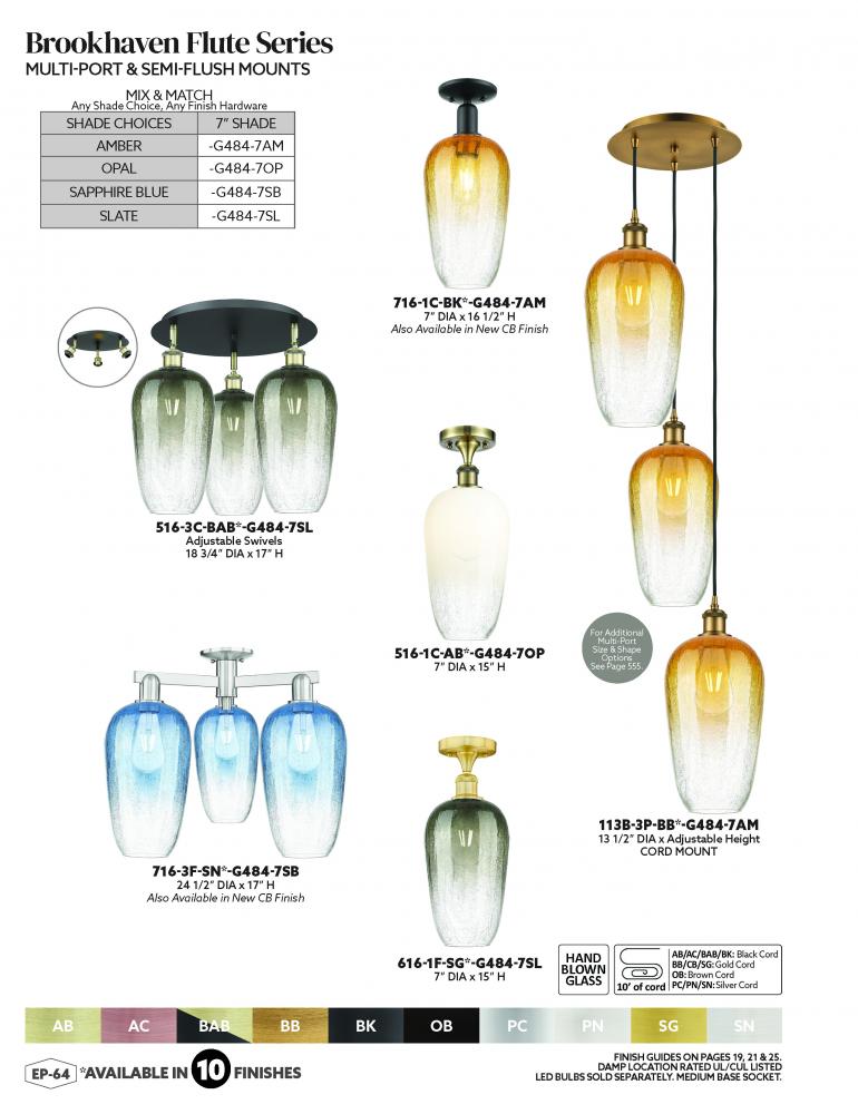 Brookhaven Flute - 3 Light - 19 inch - Antique Brass - Amber Brookhaven Flute shade - Semi-Flush Mount