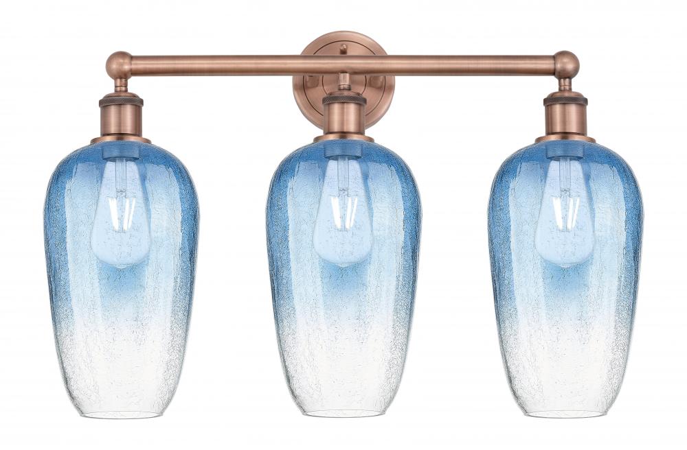 Brookhaven Flute - 3 Light - 25 inch - Antique Copper - Sapphire Blue Brookhaven Flute shade - Bath Vanity Light