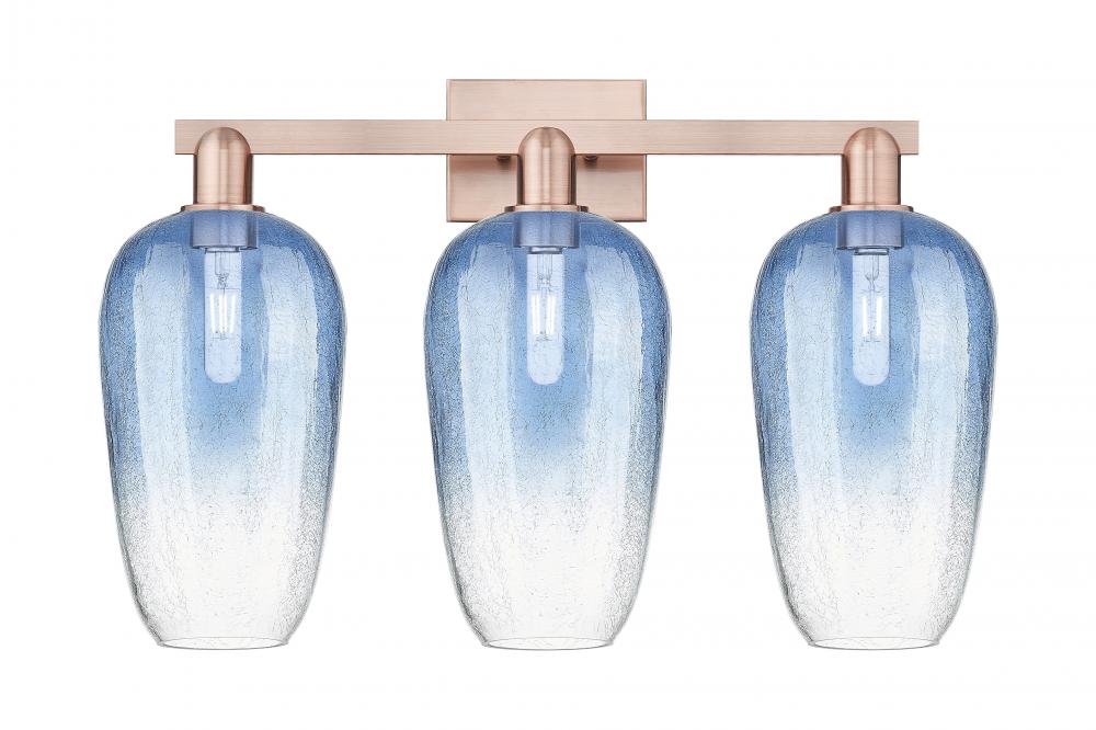 Brookhaven Flute - 3 Light - 26 inch - Antique Copper - Sapphire Blue Brookhaven Flute Shade - Bath Vanity Light