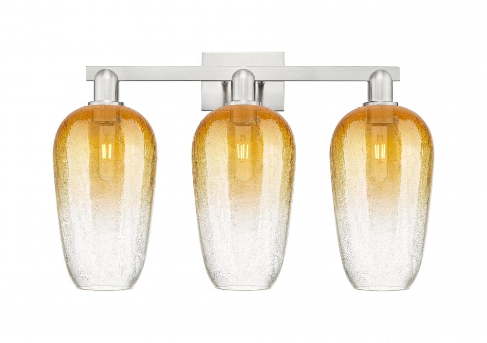 Brookhaven Flute - 3 Light - 26 inch - Brushed Satin Nickel - Amber Brookhaven Flute Shade - Bath Vanity Light