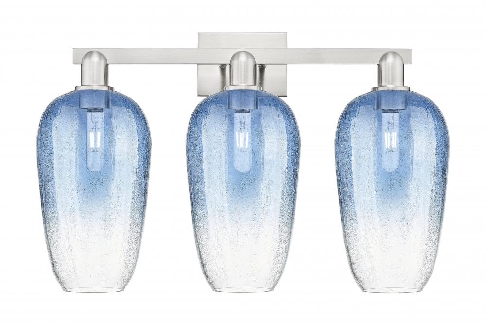 Brookhaven Flute - 3 Light - 26 inch - Brushed Satin Nickel - Sapphire Blue Brookhaven Flute Shade - Bath Vanity Light
