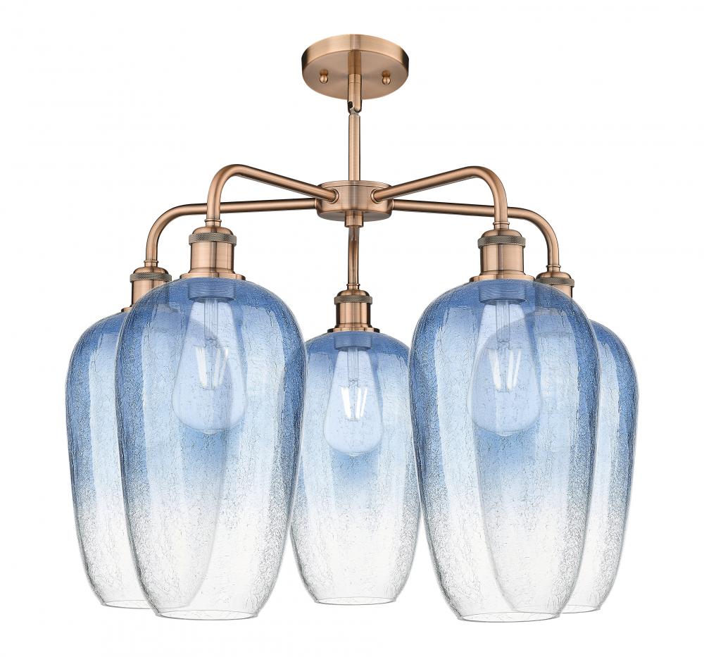 Brookhaven Flute - 5 Light - 26 inch - Antique Copper - Sapphire Blue Brookhaven Flute shade - Stem hung - Chandelier