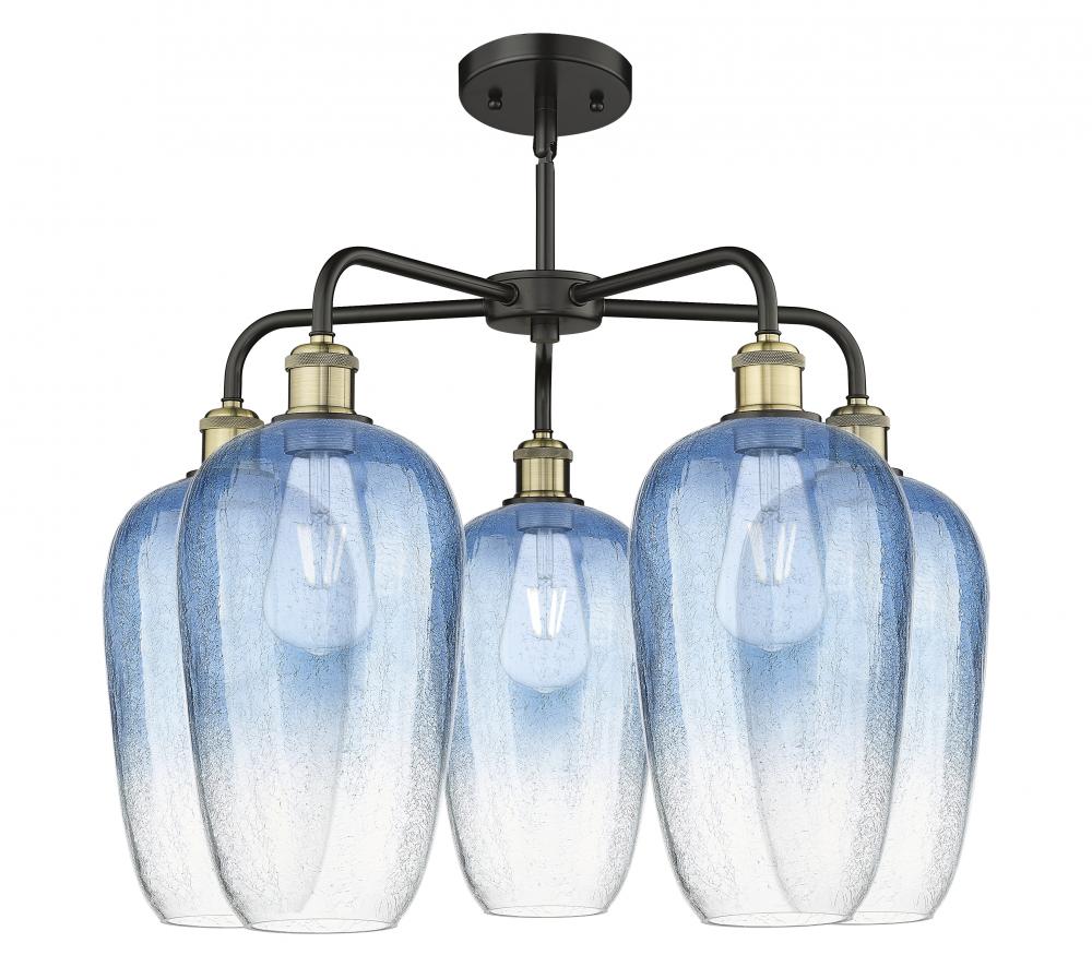 Brookhaven Flute - 5 Light - 26 inch - Black Antique Brass - Sapphire Blue Brookhaven Flute shade - Stem hung - Chandelier