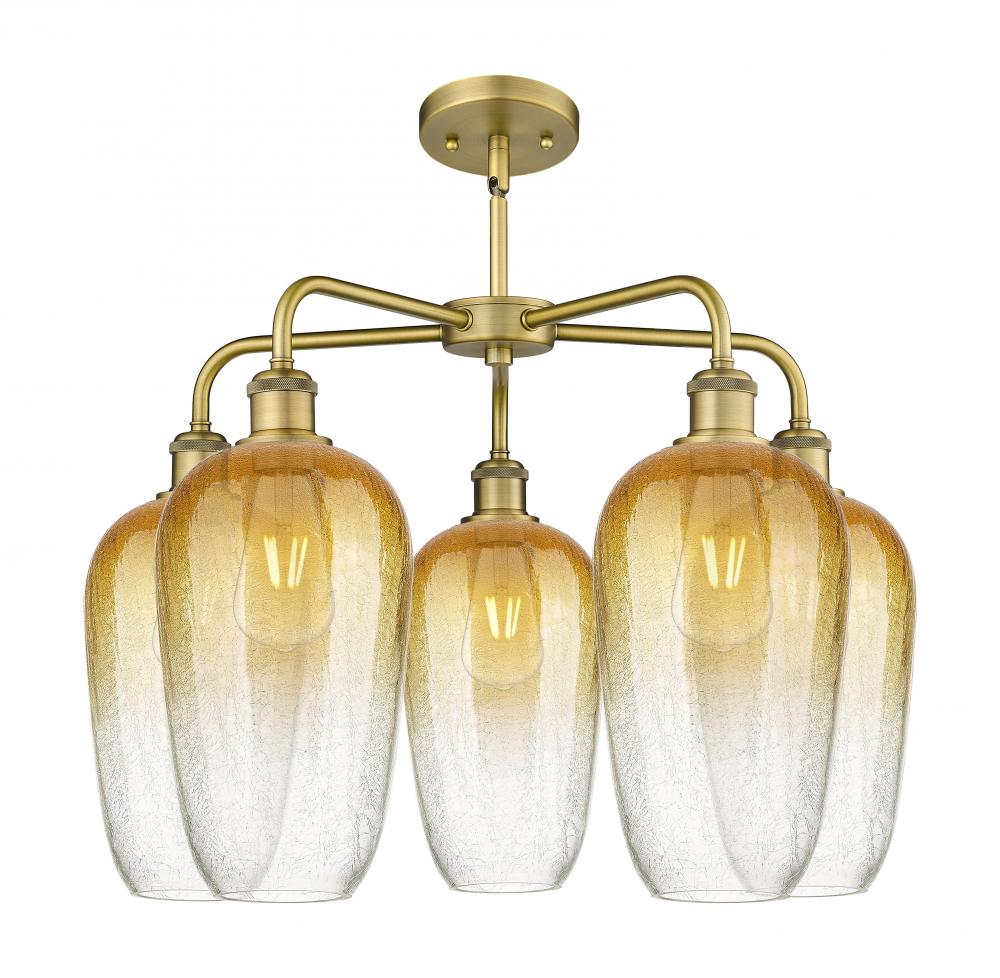 Brookhaven Flute - 5 Light - 26 inch - Brushed Brass - Amber Brookhaven Flute shade - Stem hung - Chandelier