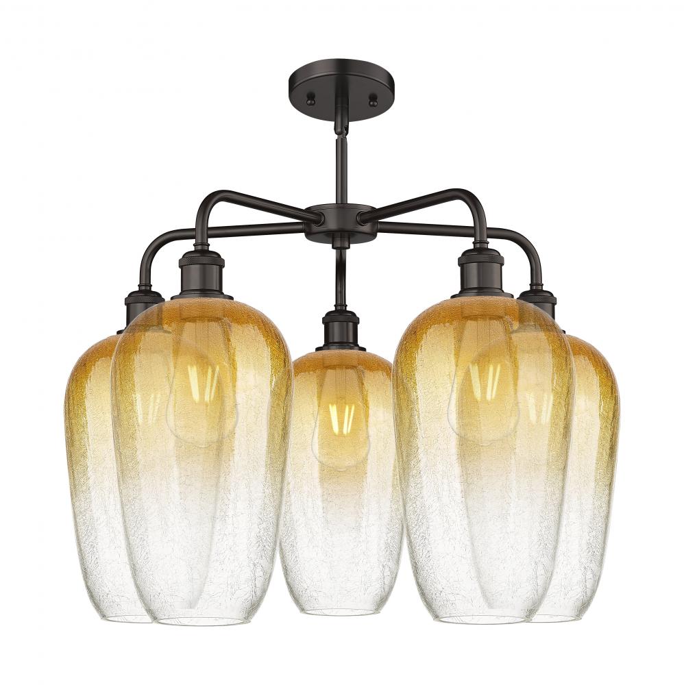 Brookhaven Flute - 5 Light - 26 inch - Oil Rubbed Bronze - Amber Brookhaven Flute shade - Stem hung - Chandelier