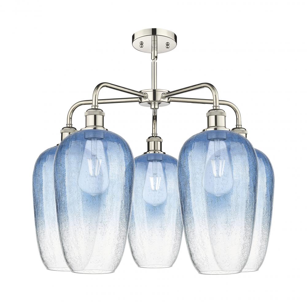 Brookhaven Flute - 5 Light - 26 inch - Polished Nickel - Sapphire Blue Brookhaven Flute shade - Stem hung - Chandelier