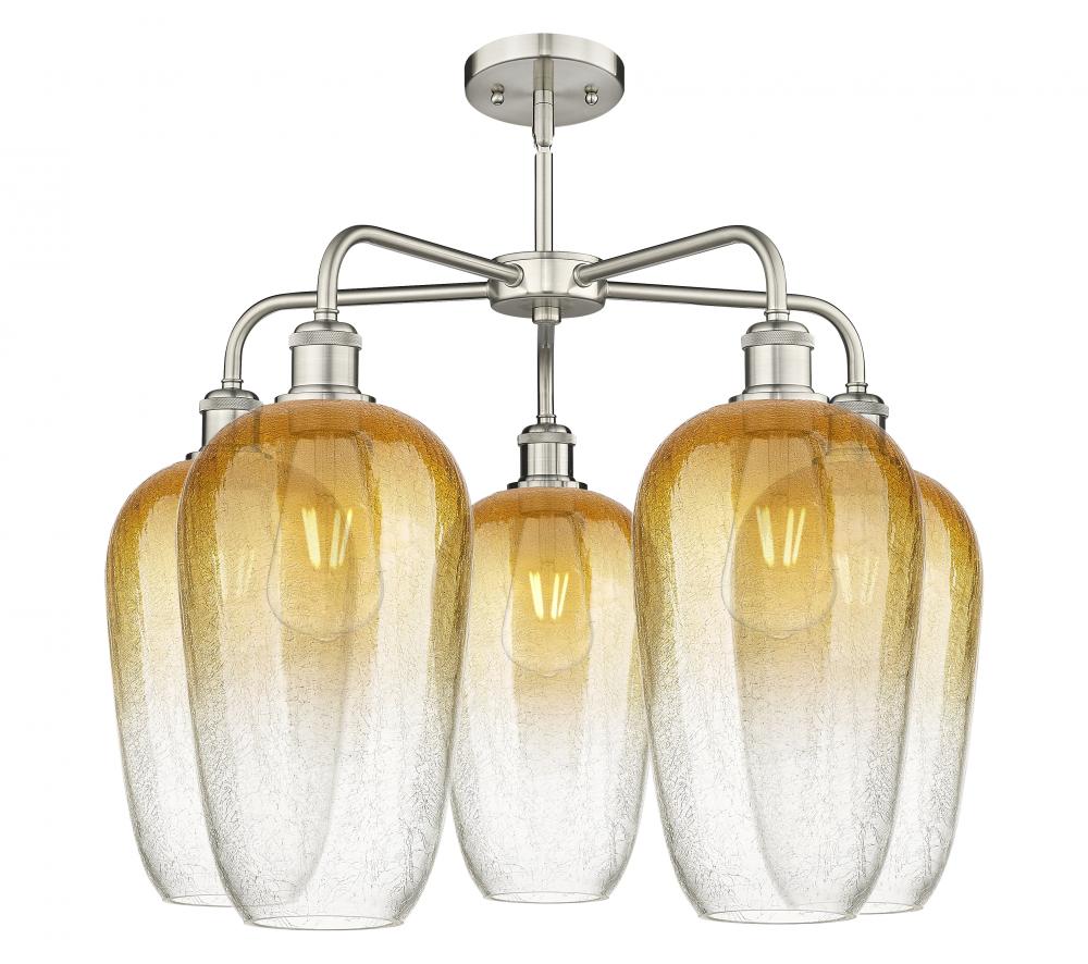 Brookhaven Flute - 5 Light - 26 inch - Satin Nickel - Amber Brookhaven Flute shade - Stem hung - Chandelier