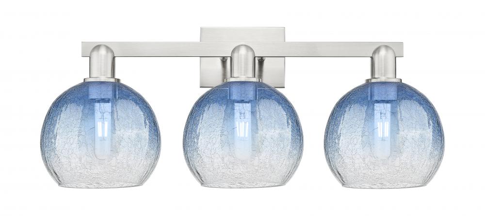 Brookhaven Globe - 3 Light - 26 inch - Brushed Satin Nickel - Sapphire Blue Brookhaven Globe Shade - Bath Vanity Light