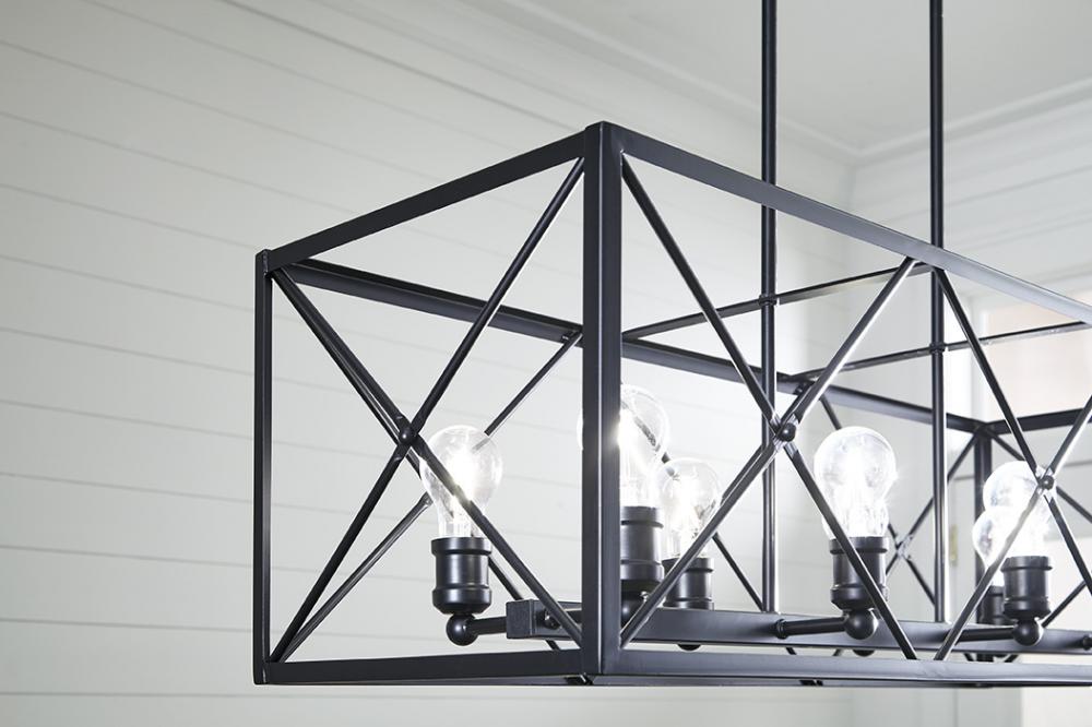 Brooklyn 8-Light Matte Black Island Pendant With Metal Framework Shade