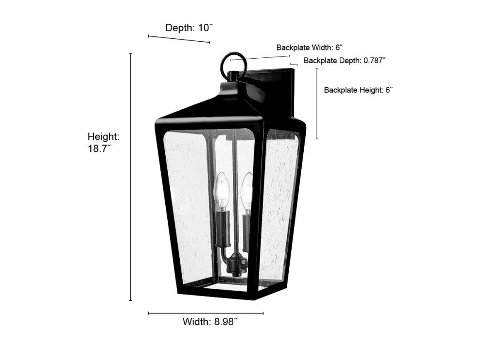 This outdoor wall sconce is 8.98 in. width x 18.7 in. height