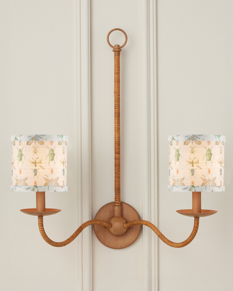 Whimsical bugs and insects lend a colorful touch to this drum-shaped chandelier shade from design partner Lacefield Designs.
