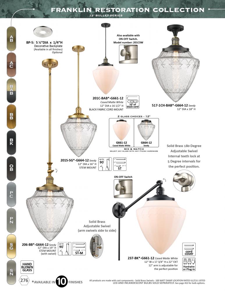The Franklin Restoration collection is comprised of heavy cast components that give the fixture a heavy Industrial look and feel. We offer the fixture in 10 finishes with a Bare Bulb look or with over 100 possible metal and glass shade options that can cha