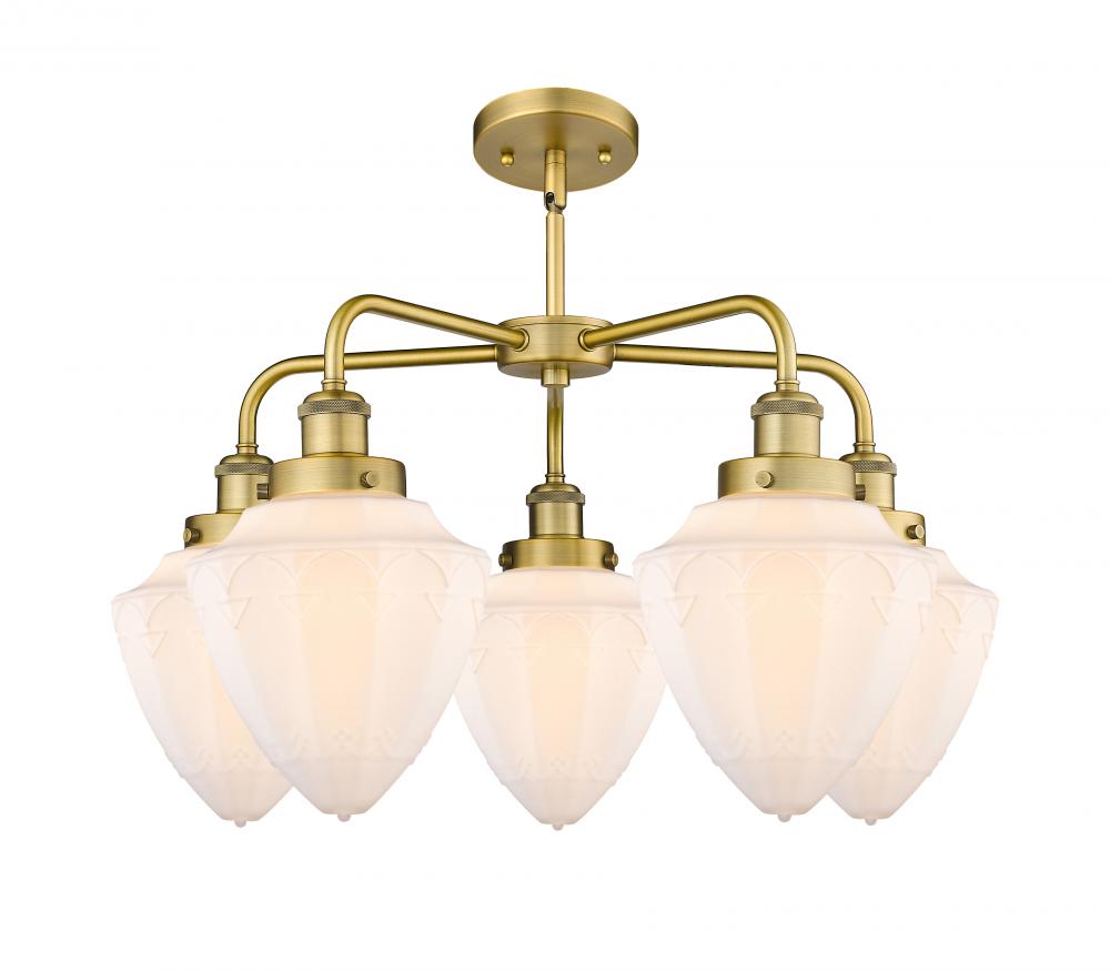 Bullet - 5 Light - 24 inch - Brushed Brass - Matte White Shade - Chandelier