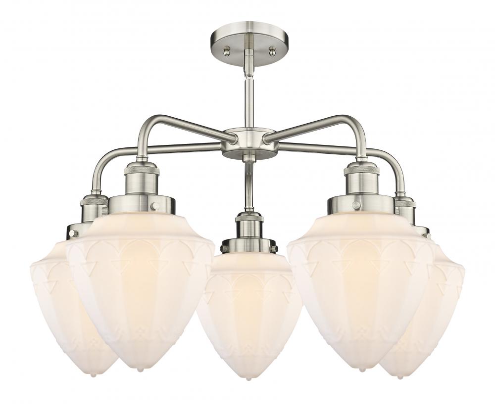 Bullet - 5 Light - 24 inch - Satin Nickel - Matte White Shade - Chandelier