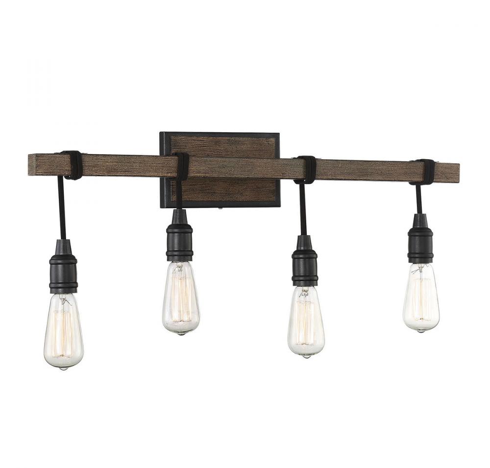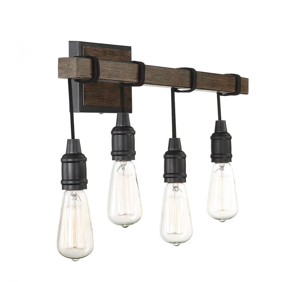 Simple, rustic style is yours with the unique Savoy House Burgess 4-light bath bar. It features little more than bare bulbs suspended from cords wrapped around the bar-shaped structure, finished in Durango, but this minimal look makes a big impact! Bath bar lights are a classic choice for illuminating vanity mirrors in bathrooms big and small, though this fixture could be used in other wall-mounted applications as well. Since the bulbs are exposed, try using stylized bulbs (not included) like tubular shape or Edison style for a different look! The Durango finish pairs nicely with black or bronze hardware, but also can mix with hardware in other finishes. Rustic, industrial and modern farmhouse style spaces are ideal choices for Burgess. When you choose a Savoy House lighting fixture, you can be certain you’ve selected a piece that will withstand the test of time.