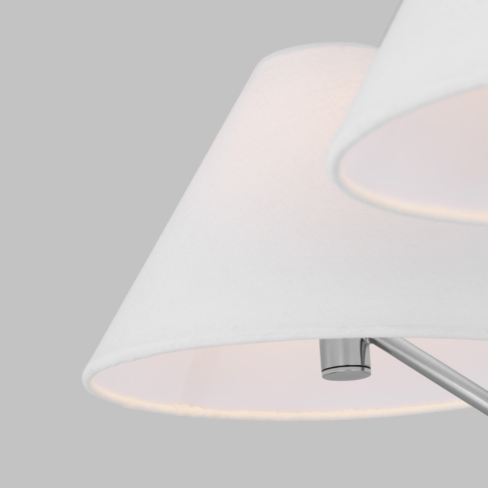 Designed by Drew & Jonathan Scott, the Burke series is a contemporary interpretation of a classic mid-century style. The bent arm and concealed socket highlight the minimalist aesthetic allowing this to be placed in a variety of spaces. A cone-shaped white fabric shade tops the bulb exuding a soft, ambient glow that is perfect for kitchens, dining rooms, or living rooms.