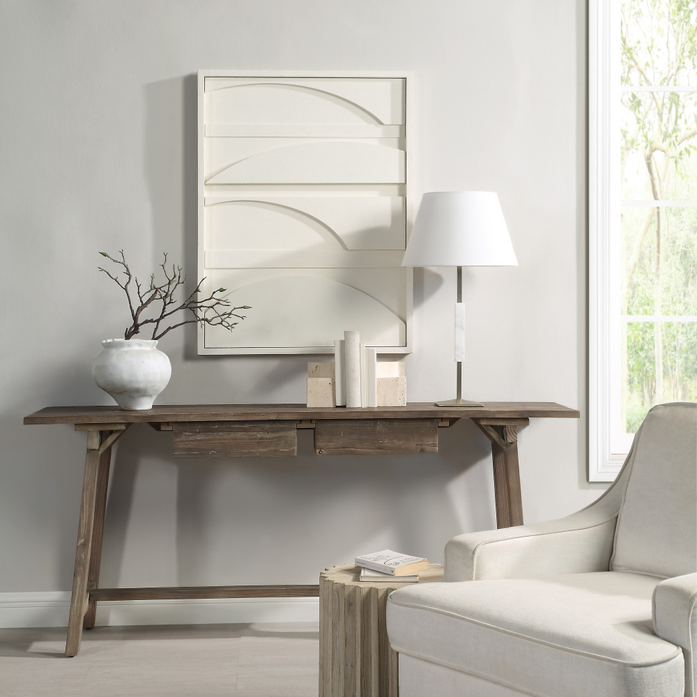 Ready to take centre stage in any stylish interior, this striking artwork marries shape and shadow perfectly. Crafted from artfully layered wood and MDF, it features a sleek matte white finish for a minimalist effect that suits any contemporary setting.