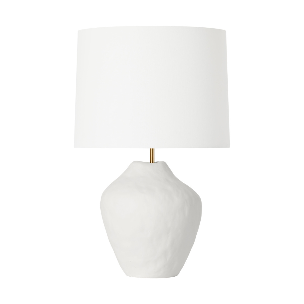 Handcrafted in ceramic, the Cadley One light table lamp by Hable has a uniquely shaped base and a black or white finish, making the Cadley table lamp an iconic design. Its crisp white shade and brass hardware perfectly accent the delicately detailed artwork. Bone offers an enduring presentation of the contemporary form that competently revitalizes your decor space. A white linen shade caps this piece off with an understated style perfect for traditional and contemporary ensembles.