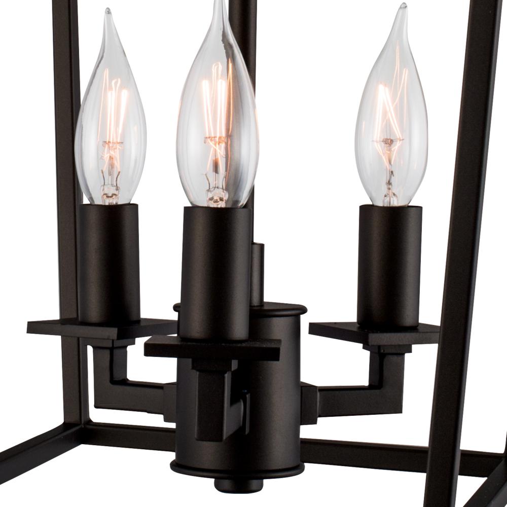 The old world charm of the Cage small pendant shines through the fixtures finely crafted framework with four candelabra bulbs.
